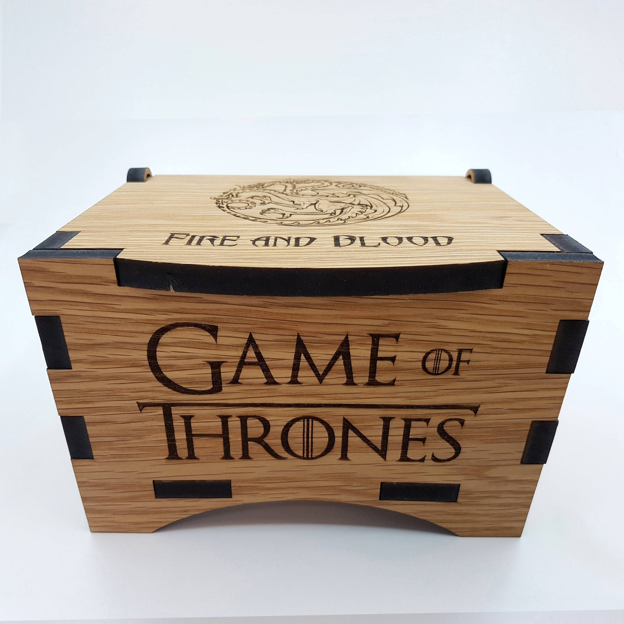 Our Game of Thrones House Greyjoy box is entirely engraved and cut by laser. Our boxes are designed to hold your precious treasures and memories. All of our boxes are hand finished and oiled to bring out the grain of the oak.