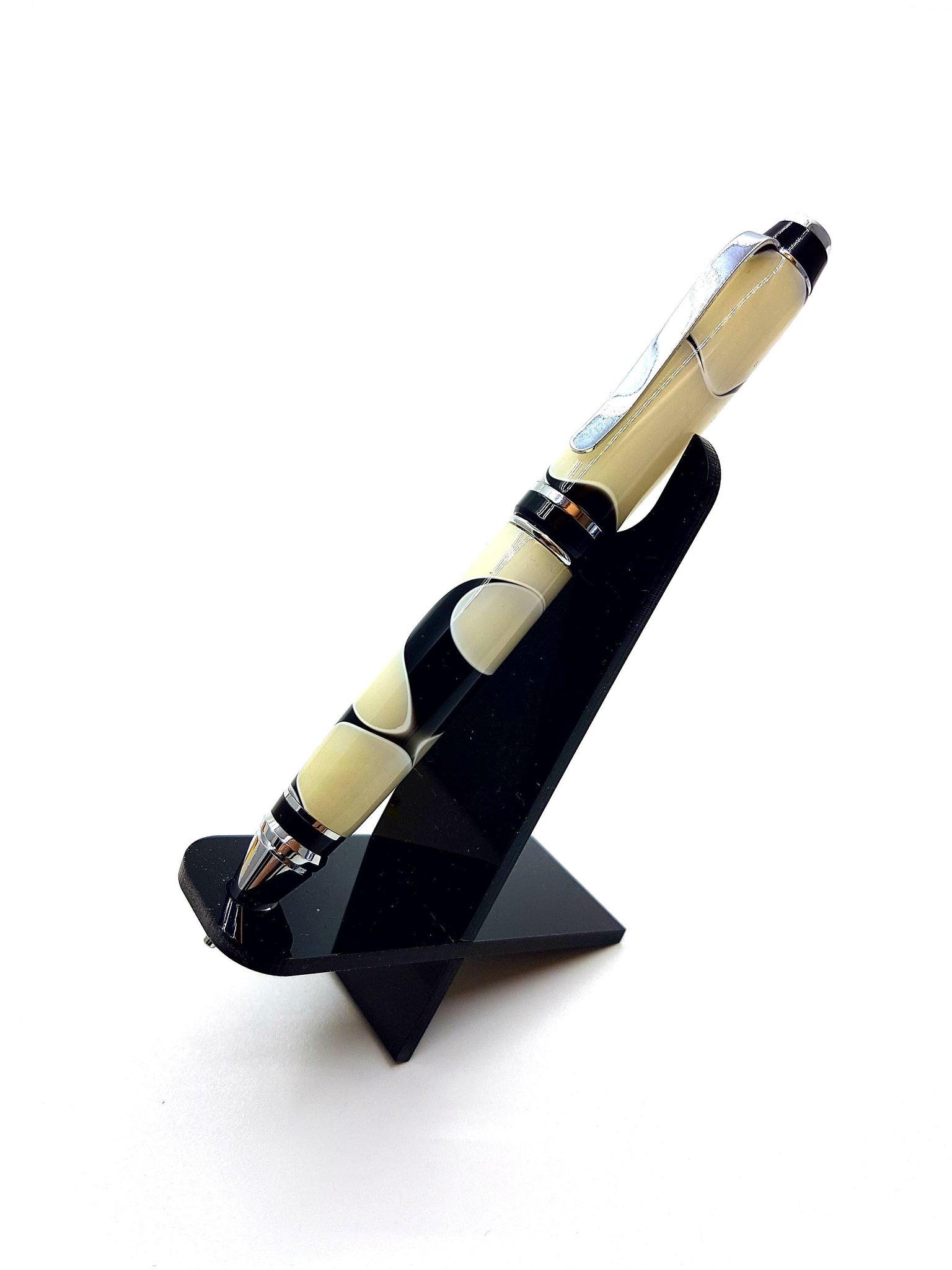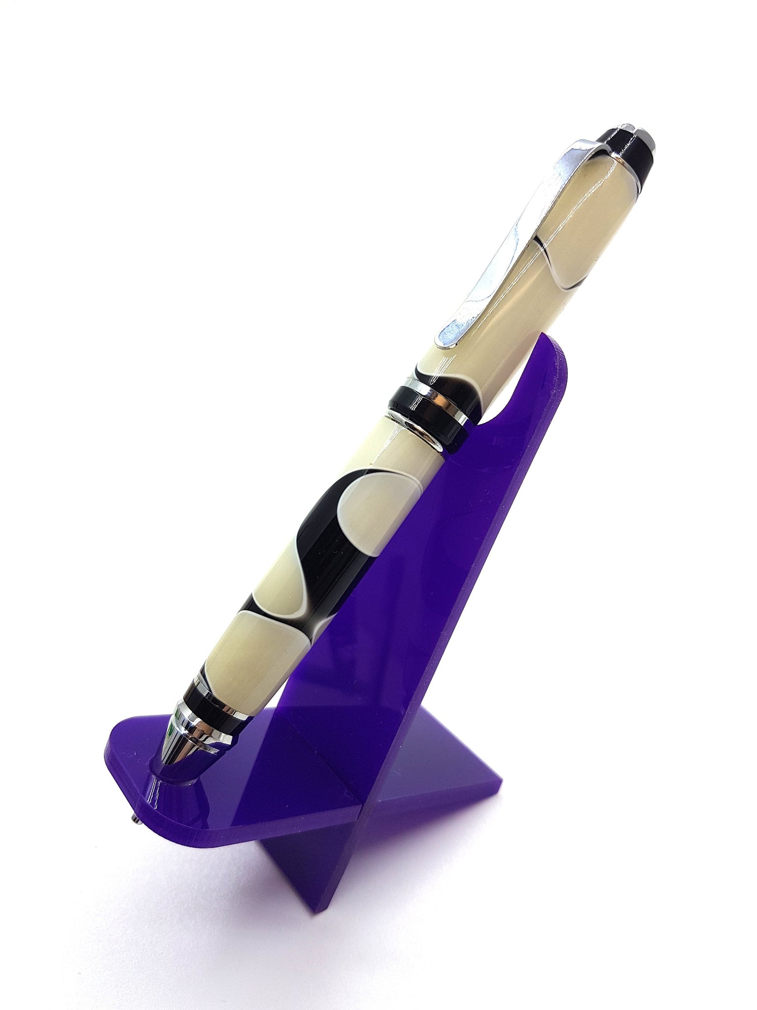 Our pen display stands come in 2 parts that just slot together and are very stable. Laser cut from 3mm Acrylic and available in many different colours.