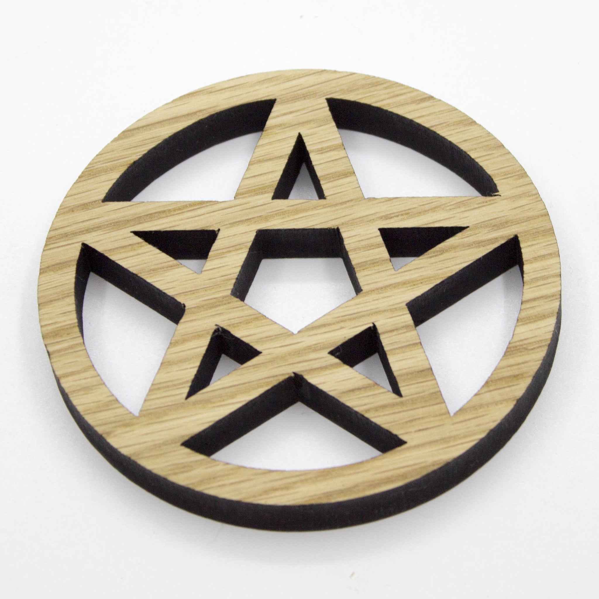 Our Pentacle Coaster set of coasters are cut from a 10mm veneer Oak.