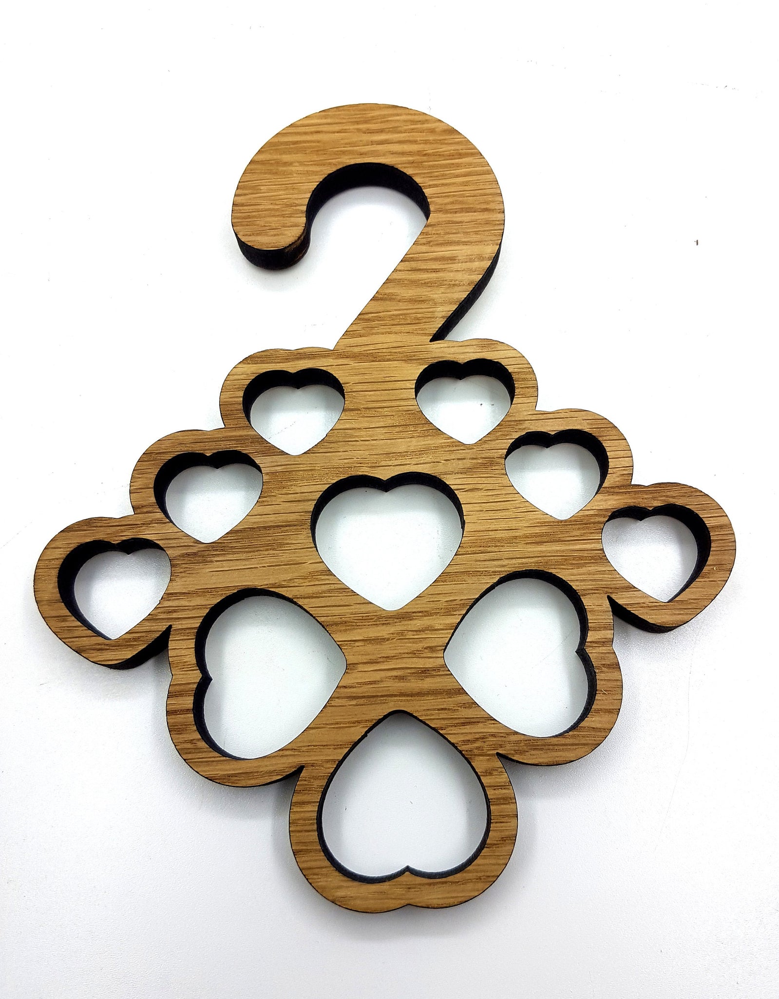 Our oak silk scarf hanger is made from 10mm Oak veneer and finished off with a coat of oil to make the grain pop.